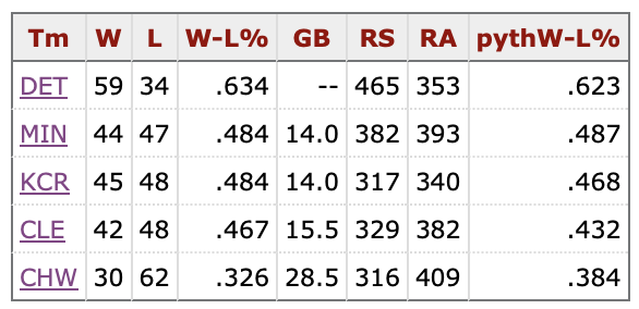 This is how the standings for the American League Central looked exactly one month ago: