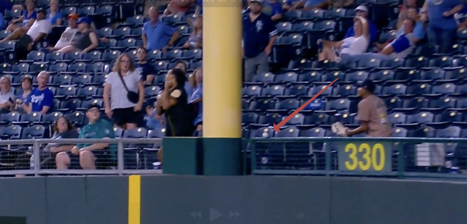 According to Statcast, that is tied with a Freddy Fermin home run for the second-shortest out-of-the-park home run in Kauffman Stadium history. Danny Valencia hit one 337 feet back in 2017.