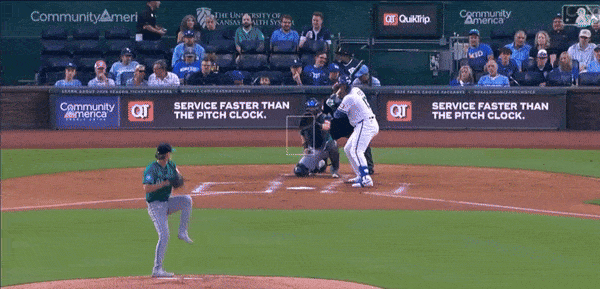 The lone slider he threw was a 1-2 pitch to Cal Raleigh that was down and out of the zone. And The Big Dumper swung and missed for strike three. The other two batters, Randy Arozarena and Julio Rodríguez, saw just three pitches. They swung at all three. And they missed on all three.