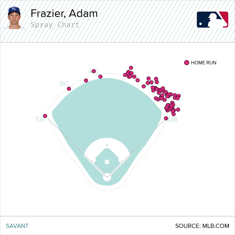 That brought up Adam Frazier. Coming into Wednesday’s game, Frazier had hit 66 home runs in his career. If you’re into percentages, Frazier hits a home run in 1.5 percent of his plate appearances. So we can say Sal Perez is more likely to draw a walk than Adam Frazier is to hit a home run.