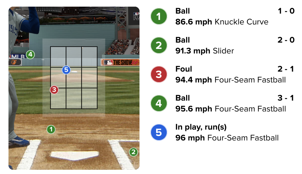 Baumann doesn’t want to walk Garcia to open the inning, but once he fell behind 3-1 and delivered two consecutive four-seamers, he was kind of boxed in. Baumann’s secondaries weren’t locating really well in the previous inning and the earlier pitches to Garcia. So he went fastball again and this happened.
