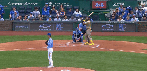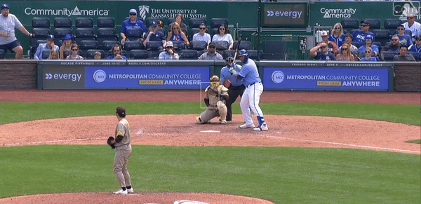 Saturday featured no such theatrics. The Padres got on the board in the first on a Fernando Tatis Jr. home run. Vinnie Pasquantino answered, on his bobblehead night, with a two-run dinger of his own to put the Royals ahead. The Padres tied the game in the third and Pasquantino, clearly having gotten the memo that you are to perform when honored with a bobblehead, pushed the Royals ahead once again, this time with a single.