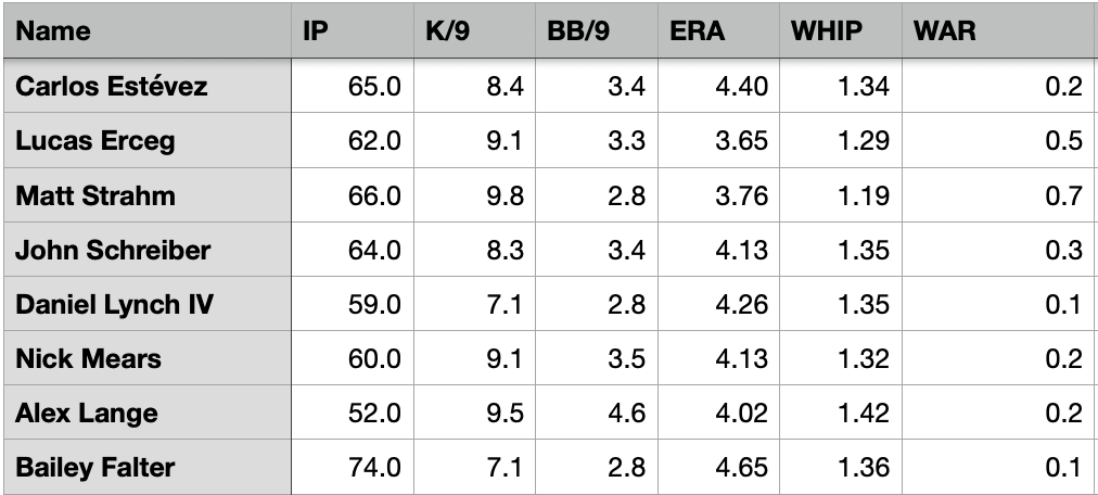 I wrote about Carlos Estévez and how I was worried about his lack of game work while with the Dominican Republic at the WBC. He pitched on Wednesday and...woof. His four-seam was averaging 89 mph, six full mph off his average last year. And he threw 28 pitches total with only nine for strikes. He walked three batters. This is absolutely a concern.
