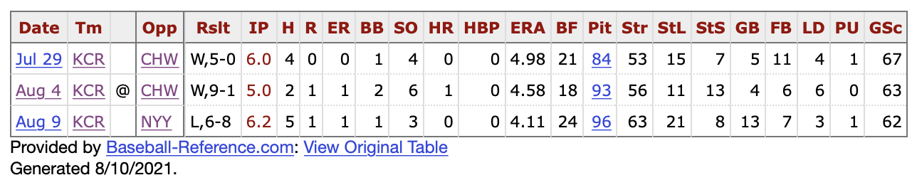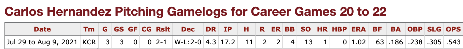 I referenced Hernández’s previous two starts. Let’s roll out the small starting sample size as I did with Daniel Lynch last week.