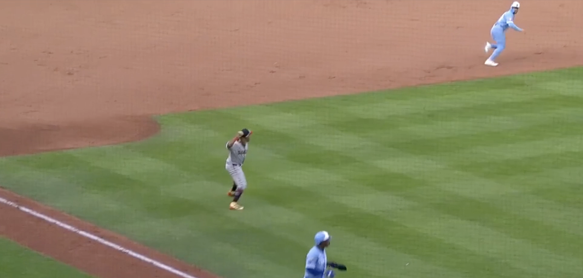 When Isbel reached on the error from Gaddis, the Royals had a win probability of 62.7 percent. After the double TOOTBLAN (a double TOOTBLAN!), it was 25.8 percent. That was a costly brain freeze.