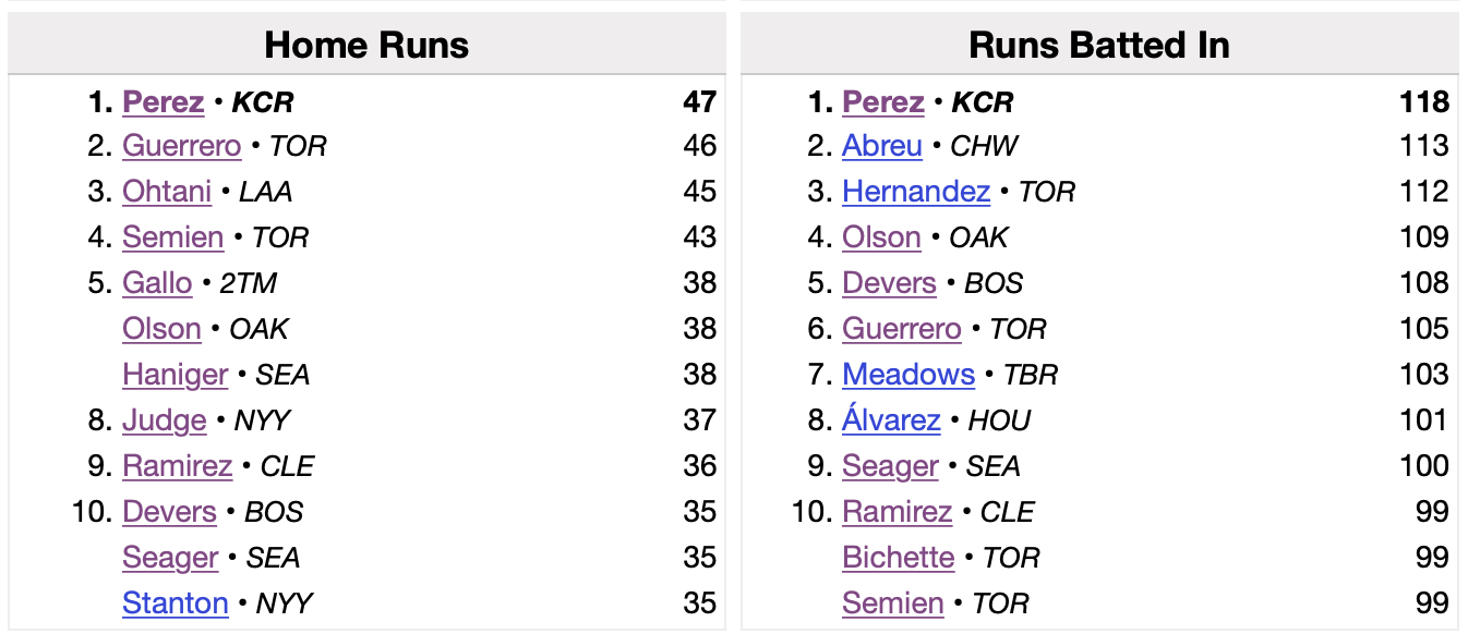 Finally, let’s check the current AL leaderboards.
