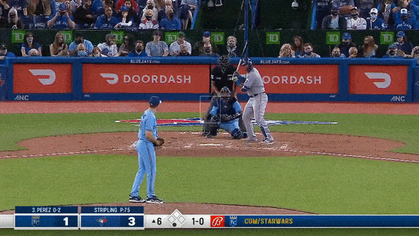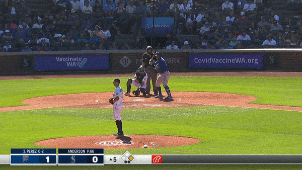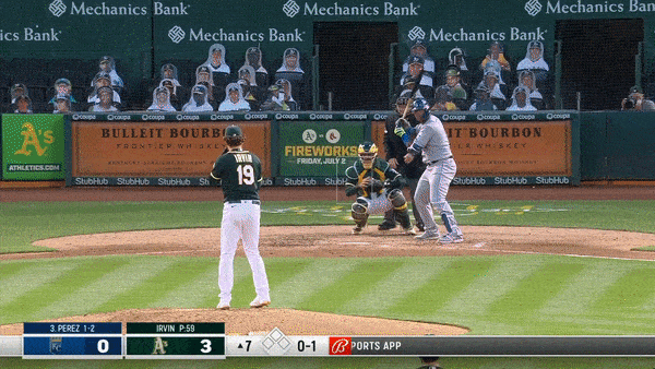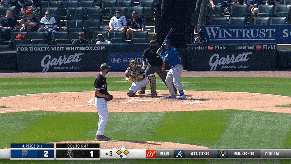 Isn’t it strange how some home runs just kind of leave you…unimpressed? I don’t mean to discount anyone leaving the yard—I mean if you started me at home plate and let me hit a ball off a tee and had me walk to pick it up and repeat the process from where the ball stopped rolling it would still take me at least three swings to get the ball over a fence. Still, this home run is one of those ho-hum kinds of shots. If Nicky Lopez cranked one like this, I’d probably craft an entire newsletter around it. Since it’s Perez, I just present the gif and look forward to what comes next.