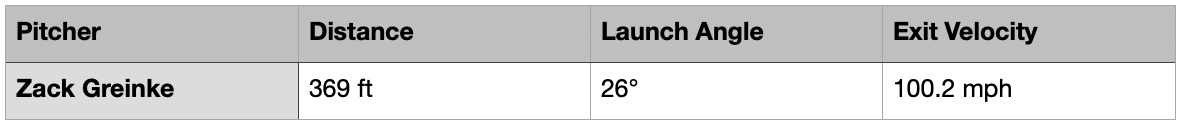 Greinke is lucky to get the fastball to the 90s these days, relying more on guts and guile than anything else in his prodigious toolbox. It’s not a horrible pitch, on the edge, but Perez is sitting heater in a 2-1 count and the Crawford Boxes are so tempting. It’s easy cheese.