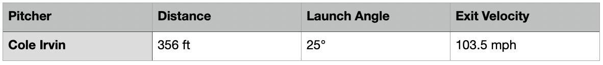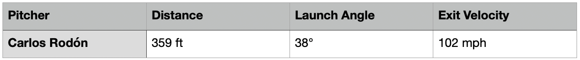 Although it should be noted, at 42 degrees, this was Perez’s highest launch angle on a ball that left the yard in 2021. That sounds impressive, but there were 82 home runs in 2021 with a launch angle of 42 degrees or higher.