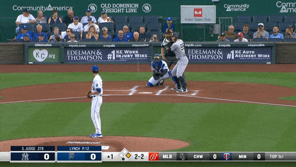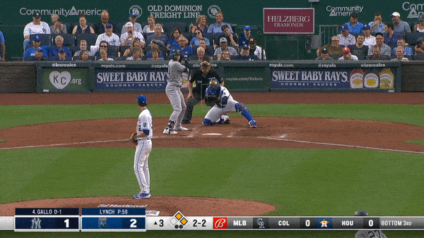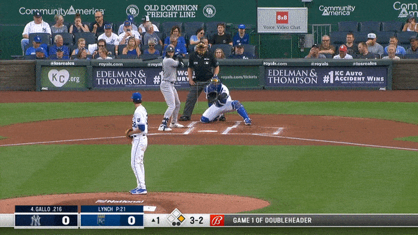 The real battle in the first came against Joey Gallo. As a lefty on lefty matchup, Lynch was much more aggressive than he was against Stanton and Judge, attacking the zone once he fell behind 3-0 on pitches away. After throwing five consecutive four-seamers to get the count full, Lynch delivered a slider that was placed perfectly to lock Gallo up for the third strike and the third out.