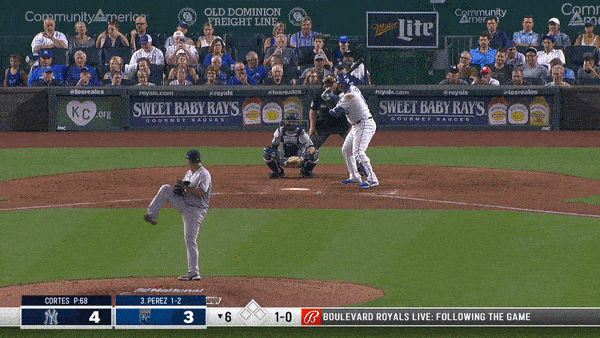 If Monday’s lid-lifter was enough to give you whiplash, and ultimately heartburn, Tuesday’s 8-4 Royals victory over the Yankess was a balm for whatever discomfort you may have felt. It was setting up for another back and forth night before the Yankee defense betrayed their chances and the Royals found those timely hits to punch the gas and pull away late.