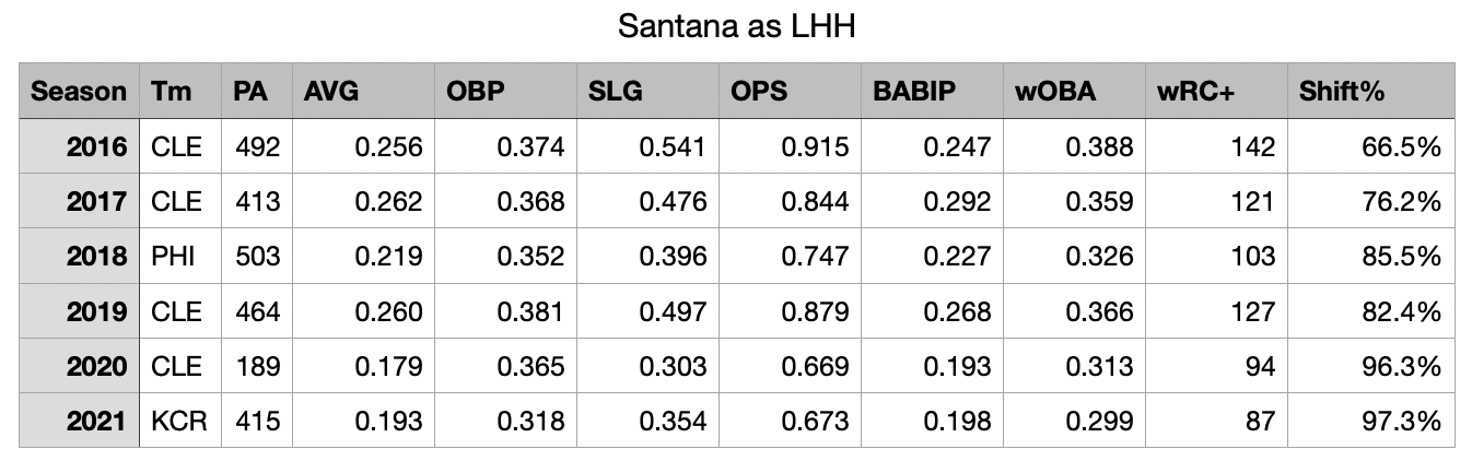 One can’t discuss Santana’s 2021 season without mentioning the shift.