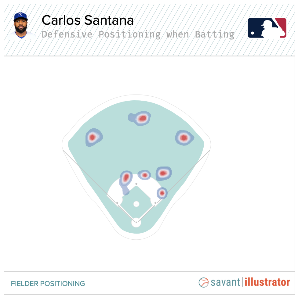 This is the average positioning for fielders when Santana is at the plate from the left side.
