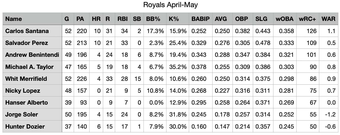 Carlos Santana has had a confounding season. It’s easy to forget through the first two months of the season, the newly-signed first baseman was the most productive hitter in the Royals lineup.