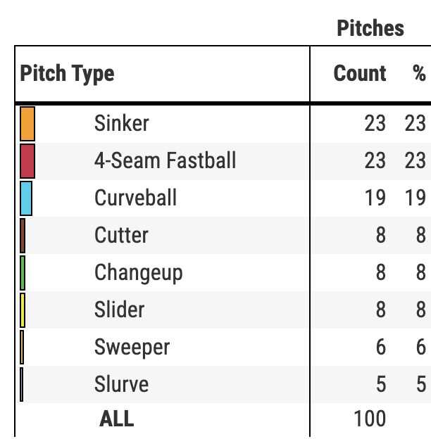 It’s a pitch the Twins just couldn’t handle. They swung at 11 of them and whiffed on two. They fouled off eight curves. Only one was put in play. It was hit hard and went for a single. Nevertheless, it’s a brutal pitch for opposing hitters to handle.