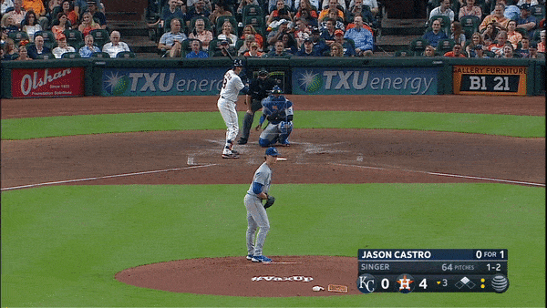Meanwhile, the rest of this start was a typical Singer grind. Yes, the first inning featured those defensive miscues, but Singer walked two to put himself further into the jackpot. He needed 27 pitches to record his first three outs. (Fine, five outs given the errors.) He required 19 in the second inning, the majority of those coming off a nine-pitch plate appearance from Michael Brantley. Another 19 were used in the third when Yuli Gurriel singled to open the inning and Carlos Correa followed with a run-scoring double. The fourth inning, when he started throwing his changeup a little more, Singer needed 21 pitches. It was as exhausting to watch Singer pitch as it was to read this paragraph detailing his pitch count.