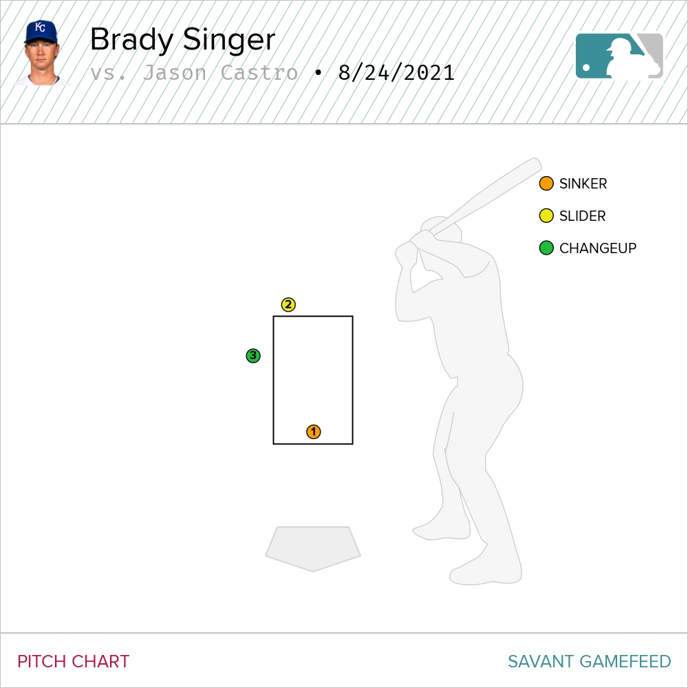 I guarantee Jason Castro was not expecting that changeup. What batter would? Singer had gone sinker, sinker, slider to jump ahead 1-2.