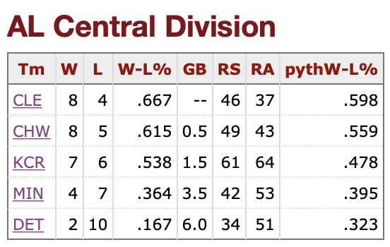 The Royals head north this week, to see how they stack up against the Twins of Minnesota. Minnesota spent the week in the Los Angeles area, losing both games to the Dodgers and then dropping two of three to the Angels. As you can see from the standings above, they’re scuffling. Apart from one random day in June, they’ve been in first place in the Central since April 24. Well, at least until this week. I told you the Dodgers are a destructive force. I guess the Angels are, too. At least when it comes to the Twins.