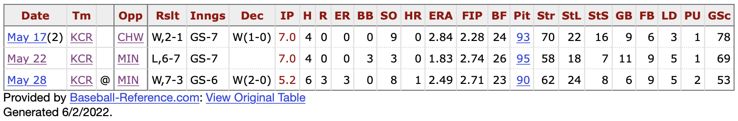 Three consecutive starts with Game Scores above 50. A ton of strikes underscores how he’s attacking the zone. The ground balls are still there and he’s cut down on the walks. Singer had similar successes in 2020, but after the struggles of last summer, it’s an amazing transformation.