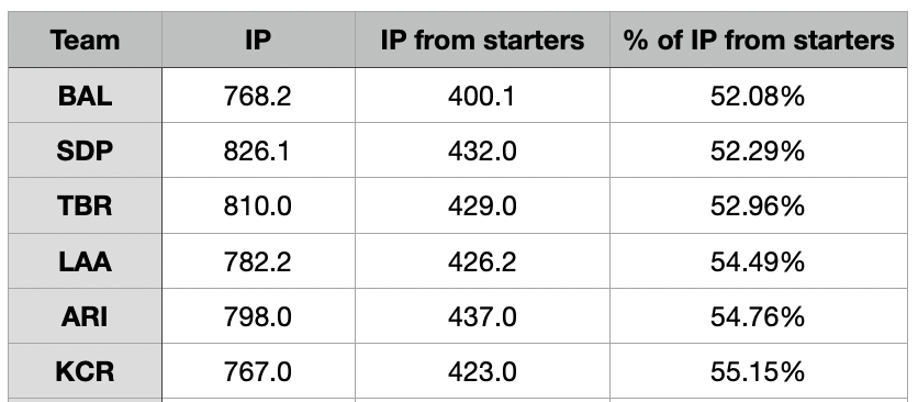 They currently get the sixth-fewest innings from their starters as a percentage of total innings thrown.