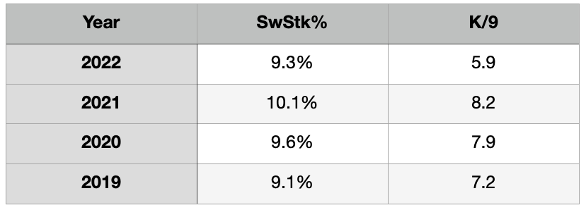 I want to be clear, I’m not drawing a direct correlation to lack of swing and miss to runs allowed or even winning ball games. I’m merely painting with a broad brush to illustrate that teams that don’t feature a hearty swing and miss from their pitching staff generally aren’t a good one.