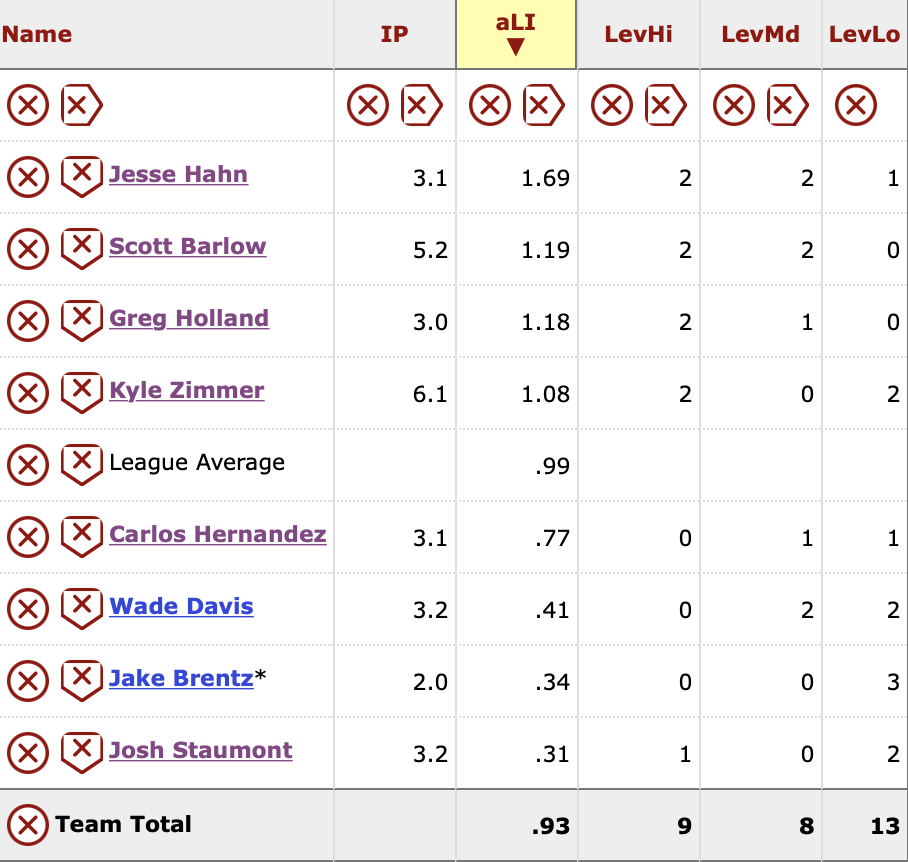 Matheny is fortunate enough to have options in his bullpen, along with a knack of generally pressing the right buttons. While it’s far too early to draw any kind of conclusions about how 2021 is going to turn out for Hahn, it would probably behoove the manager to move him out of some of the higher leverage situations the Royals may encounter. Give him a chance to get right. Hahn is still an important contributor to a bullpen that should absolutely be a strength for this team. Right now, Hahn is leading the Royals’ bullpen in average Leverage Index, the measurement of pressure in an appearance. Of course, some of that is his own doing. But part of that measurement is the time he’s being brought into the game.