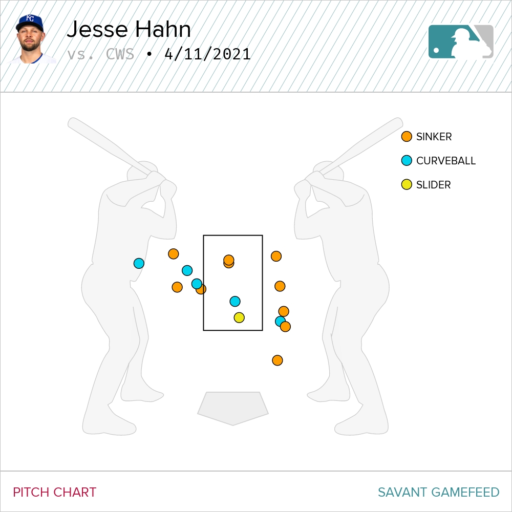 Hahn followed up the go-ahead home run from Eaton with a walk to Zack Collins before he was pulled from the game. Hahn’s pitch chart from Sunday is ugly. Four pitches in the zone, 10 of the 12 others nowhere close.