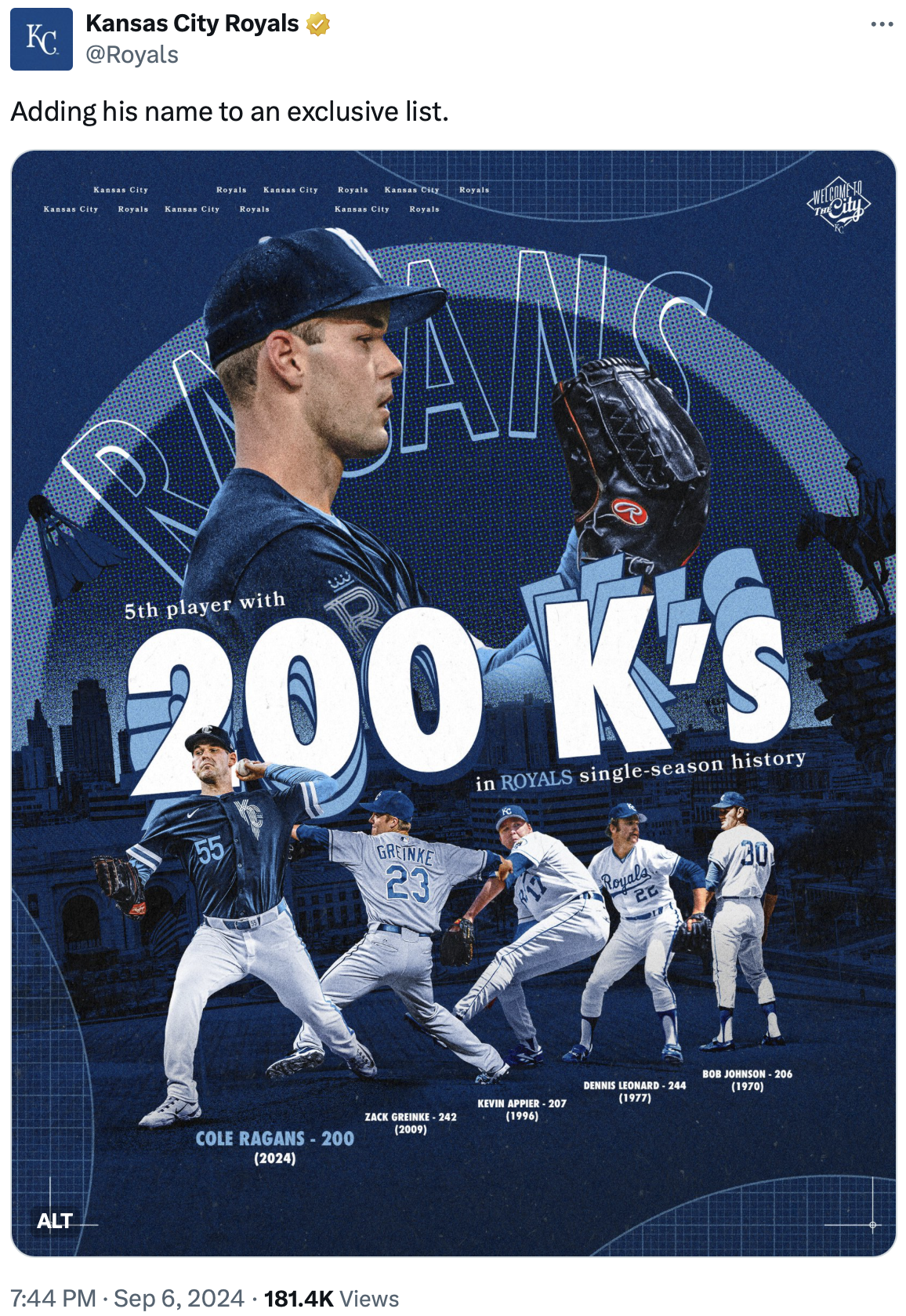 While Wednesday’s game was provided some relief from the stress of a postseason race, Friday’s affair started off a bit nervy. There was a touch of apprehension in the air. Would the Royals be able to build off their lone win in over a week? Or would the Twins roll in to Kansas City and once again push the Royals around? The Royals had Cole Ragans on the mound who is exactly what you want in a large game. The lefty gave the Twins a glimmer of hope in the first, allowing a pair of two-out singles, but quickly settled in. He fanned Royce Lewis in the third for his 200th strikeout of the season.