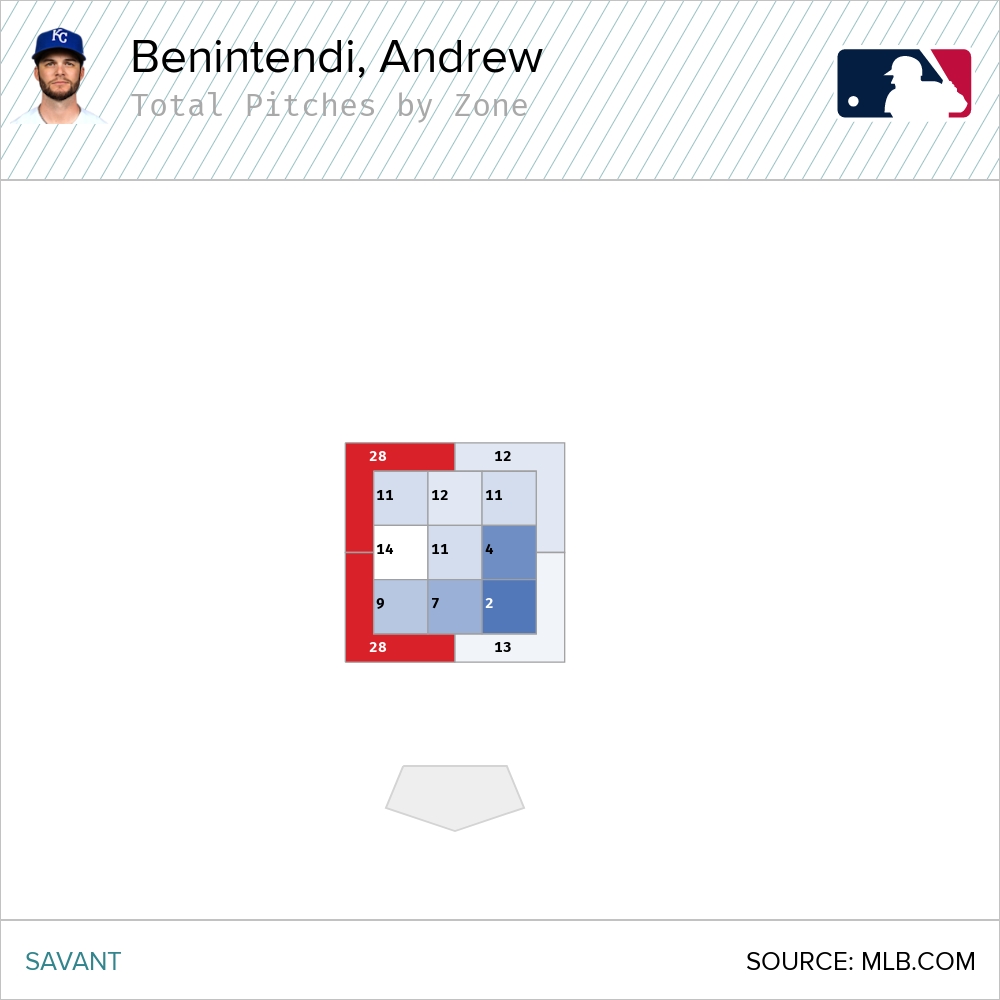 Opposing pitchers are working Benintendi away. It doesn’t take long for word to get around when a guy looks long at the plate. This has been the modus operandi against him since Opening Day.