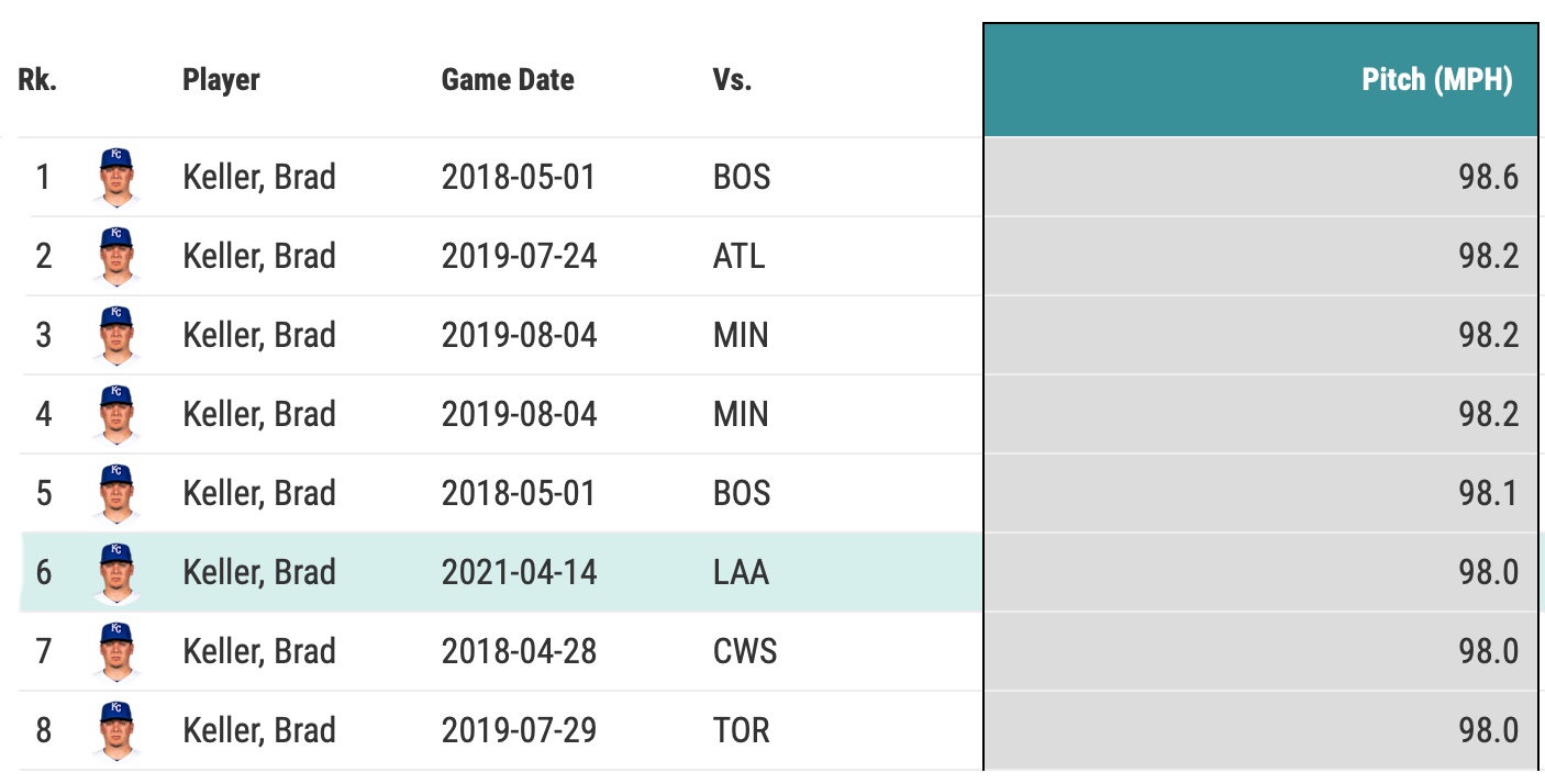 Keller, like his counterpart from the previous night Danny Duffy, was throwing heat the likes of which we don’t normally see. He touched 98 mph in the third, just the eighth time he’s thrown a pitch that hard in his major league career. And the first time he’s done that since August of 2019.