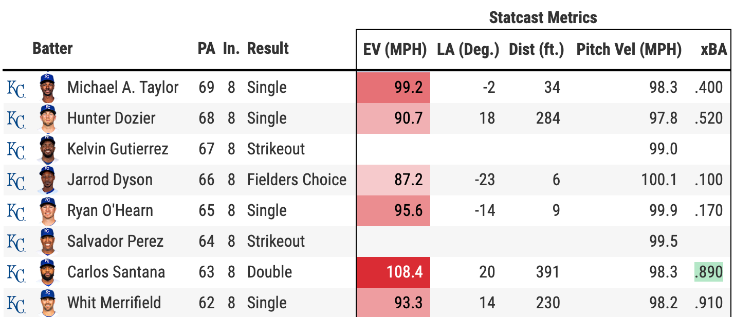 This was exactly the kind of situation we’ve seen time and time again over the last couple of weeks where the Royals would get in a position to score and ultimately fail to execute. It was such a massive reason why they dropped 11 of 12 in that stretch—just a total failure in clutch situations from the offense.