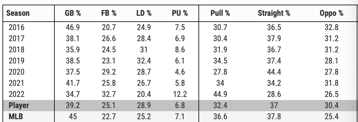 In the early goings of 2022, Merrifield’s line drive rate is way down. It’s currently at 20 percent, well off his career rate of 29 percent. In addition to that, he’s pulling the ball 45 percent of the time.