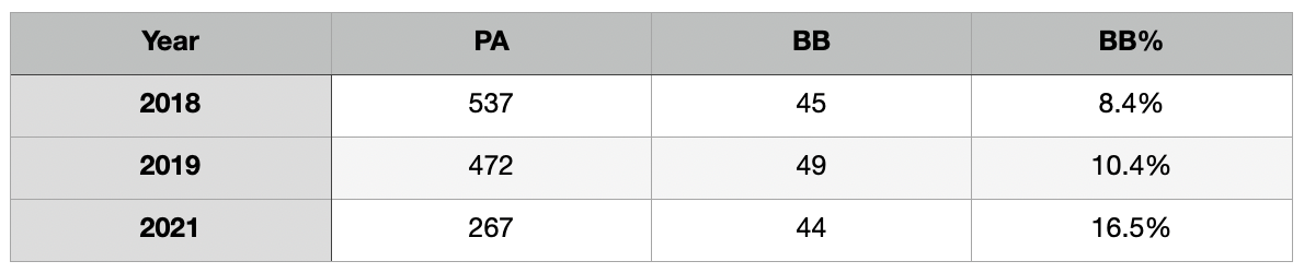 Entering the weekend, Witt Jr. posted .292/.369/.568 in 271 plate appearances in 2021. He had trimmed his strikeout rate to a still-maybe-a-little-high-but-somewhat-respectable 24 percent. He’s balanced that a bit by walking 9.2 percent of the time.
