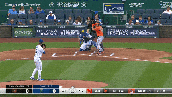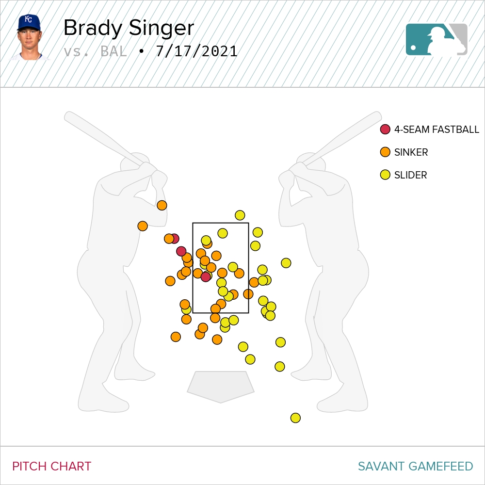 That came in the first inning. If you want to see what an effective Singer outing should—and could—look like, take some time to view the first inning from Saturday. He’s not always pitching ahead in the count but Singer was getting Oriole batters to swing at his pitch, on his terms.