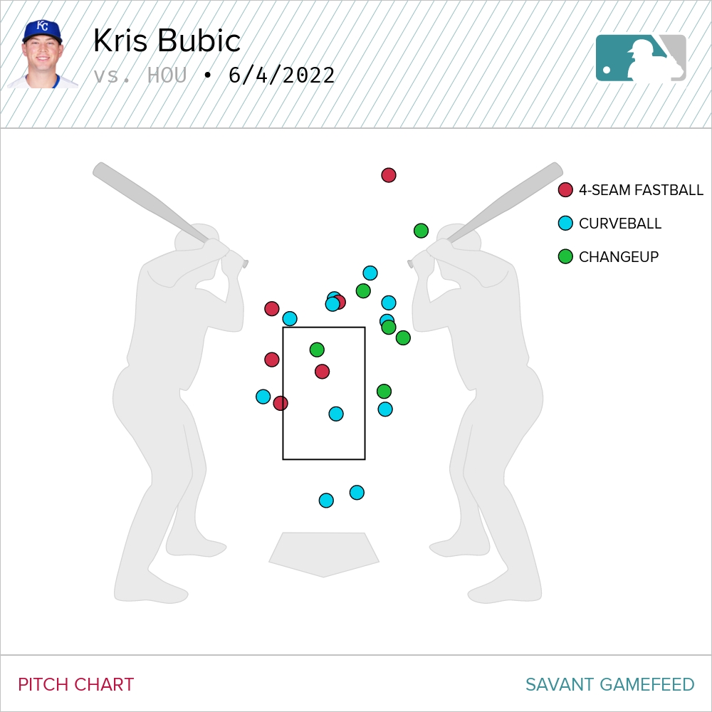 Then, Bubic continued the Royals’ frustrating trend of not missing bats. He recorded only five swinging strikes on 98 pitches. He finished with a 20 percent CSW% (called strike plus swinging rate), which is really kind of low for a starter who throws close to 100 pitches.
