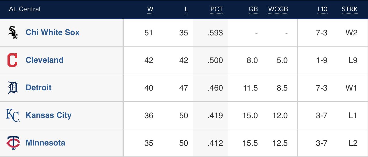 The Royals close out the first half of the 2021 season with a visit to Cleveland. As you can tell from the standings posted above (and the write-up about getting swept in Wednesday’s doubleheader), they are reeling, losers of their last nine.