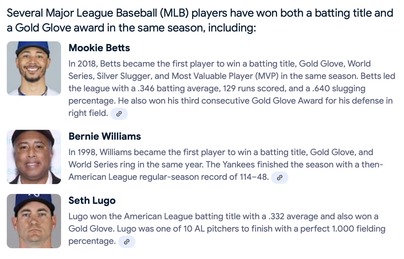 In yesterday’s newsletter, there was some discussion about whether or not Witt was the first shortstop to win a Gold Glove and a batting title in the same season. I figured that info had to be readily available. I went to Google. My mistake.