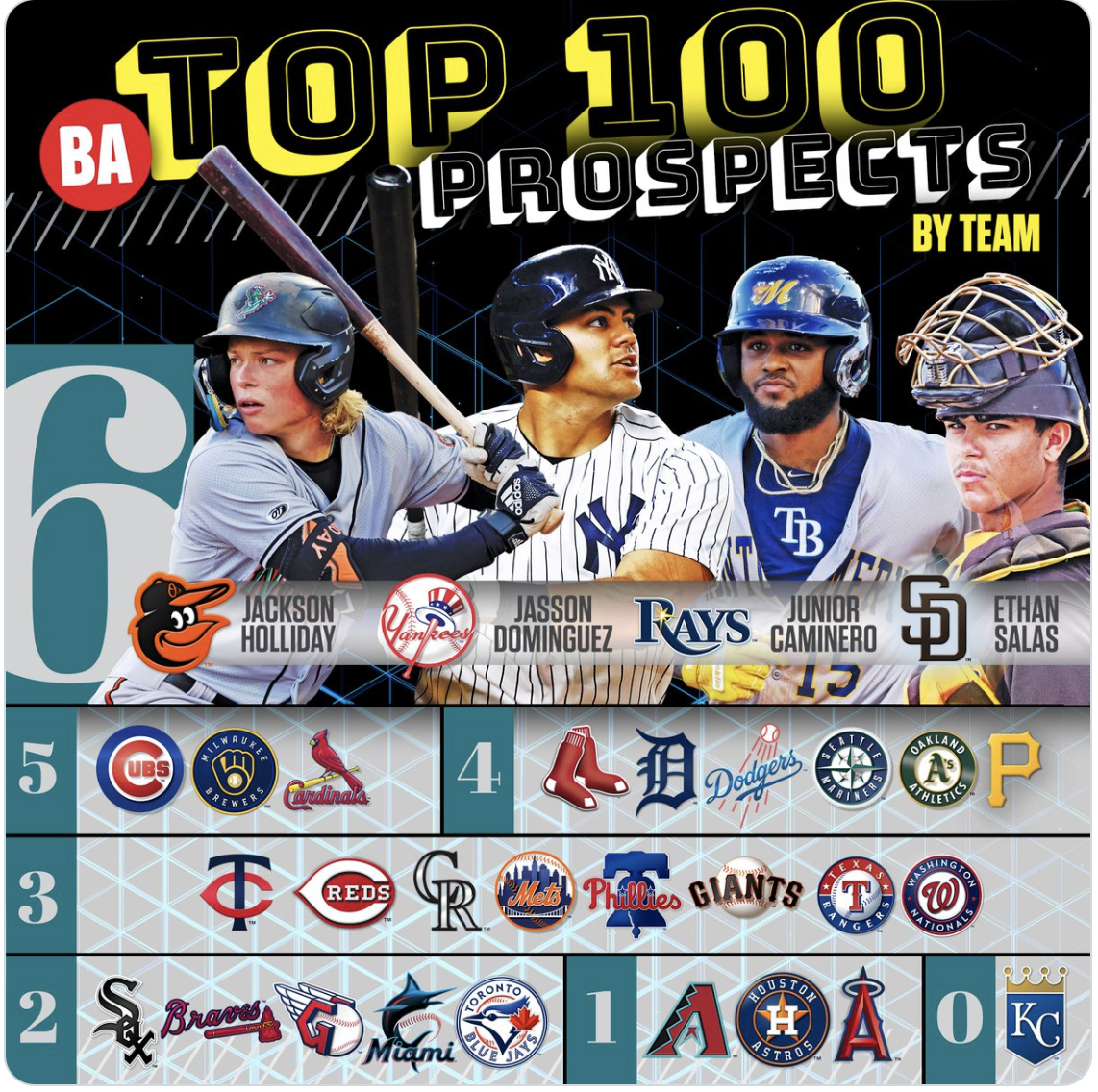 Twenty-nine teams are represented in the Baseball America Top 100. One…is not. Congratulations to the Royals I guess.
