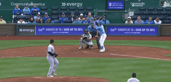 If I called the bunt before it happened, but I was alone, do I make a sound? The possibility of a bunt in that situation didn’t enter my mind until the Bally’s KC production team had a great closeup of Fermin as he stepped into the box. It caught a moment where his eyes briefly darted around. My first thought was that he was feeling the situation at hand. Nerves probably. Then I thought…he’s checking the positioning of the infield because he’s going to bunt.
