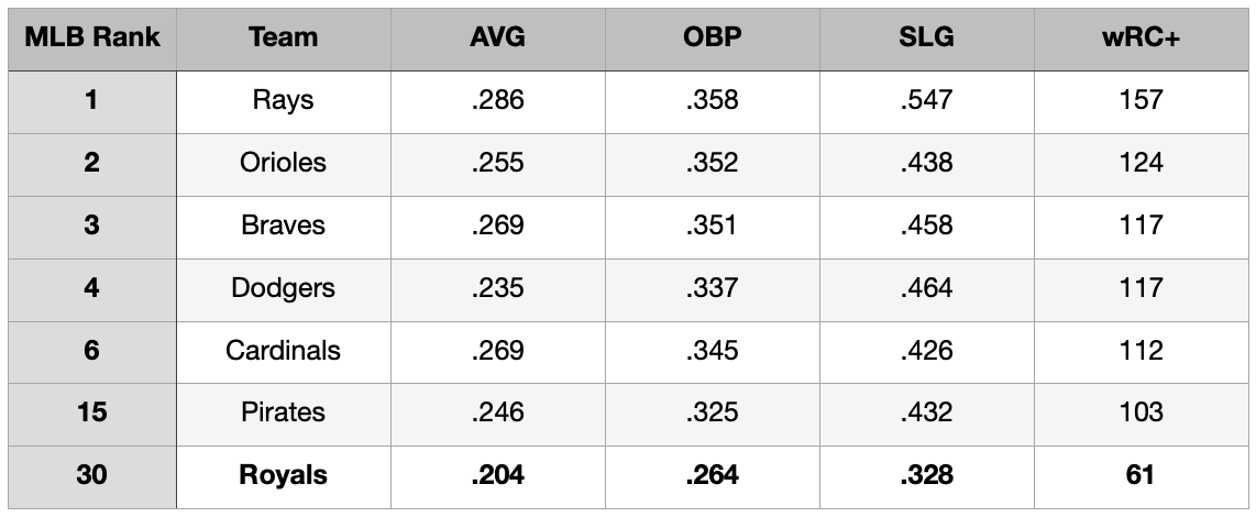 The offensive numbers for the Royals have been, across the board, absolutely brutal in the season’s first three weeks.