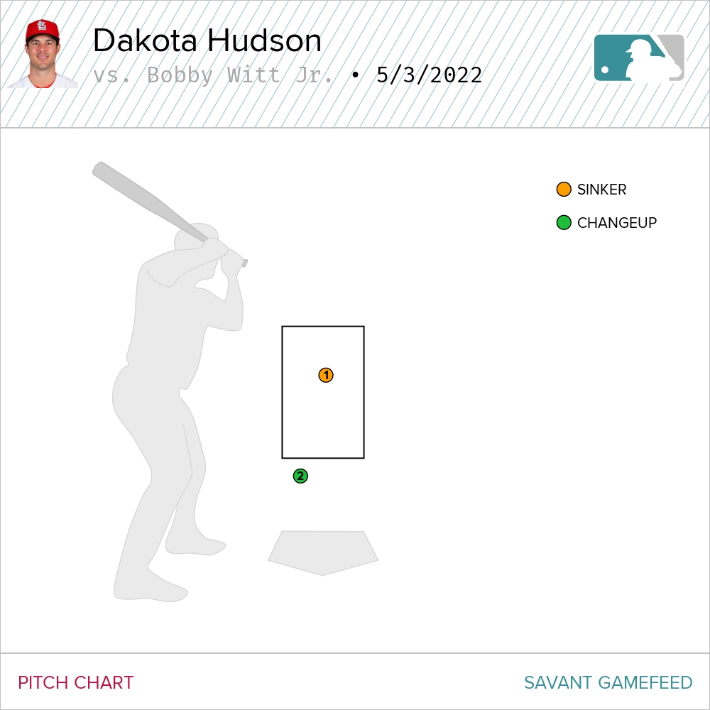 Seriously, that pitch was diving, well out of the strike zone. If I posted a pitch chart of Witt’s at bat, you’d think Baseball Savant had the sequencing of pitches backward.