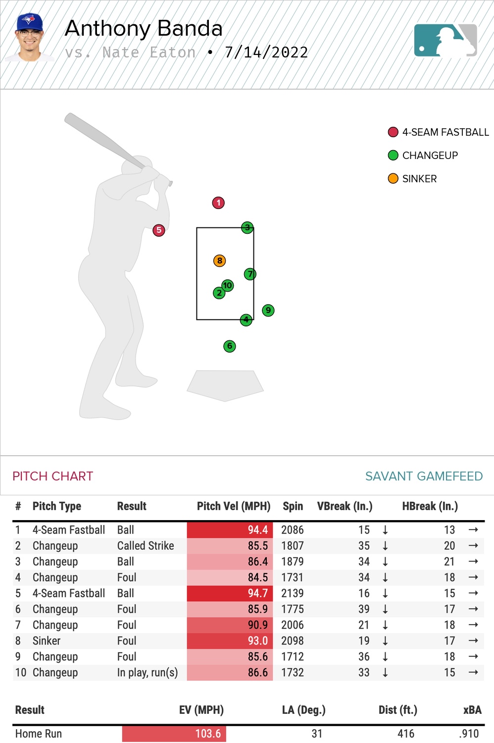 Fantastic effort to foul off those changeups and the sinker on the 3-2. Some were out of the zone, for sure, but he needed to protect. He saw just enough and was able to blast it out of the park. Memorable.