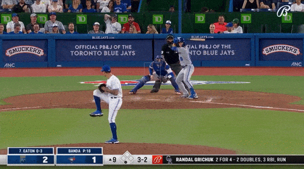 Two outs! The second out came on a steal. Olivares had the base easy, but he slid late and popped off the bag. Credit to Bo Bichette for keeping the glove on Olivares.