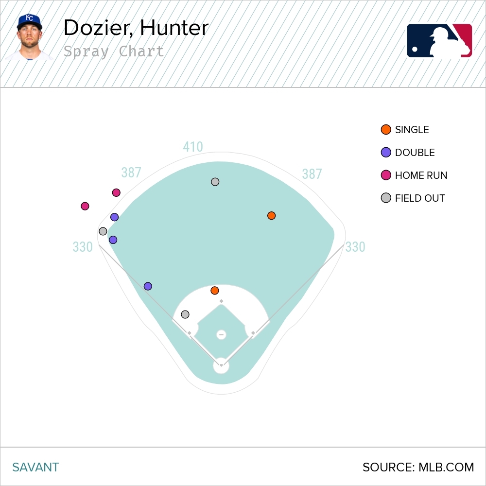 I think we spent a little too much time lamenting Hunter Dozier’s defense in the first take, so let’s close by talking about his offense, which has come around in the last few weeks.