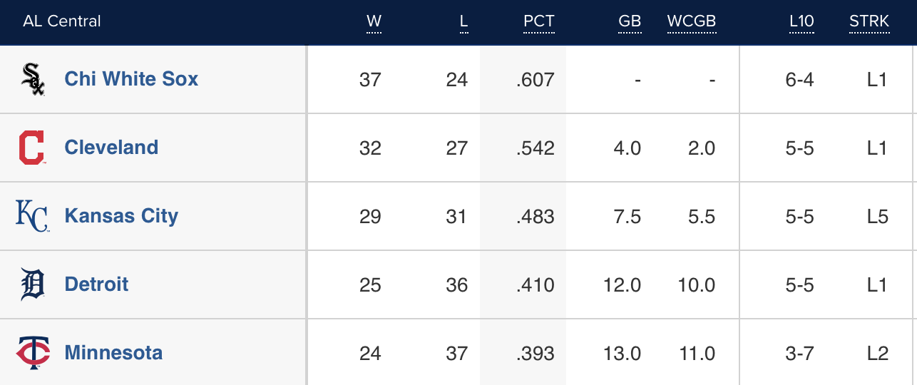 Every team in the Central lost on Wednesday.