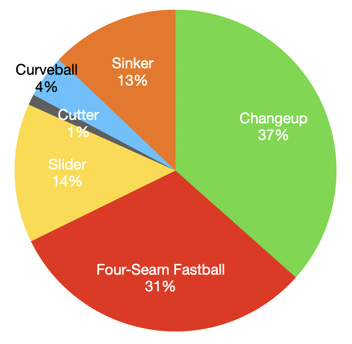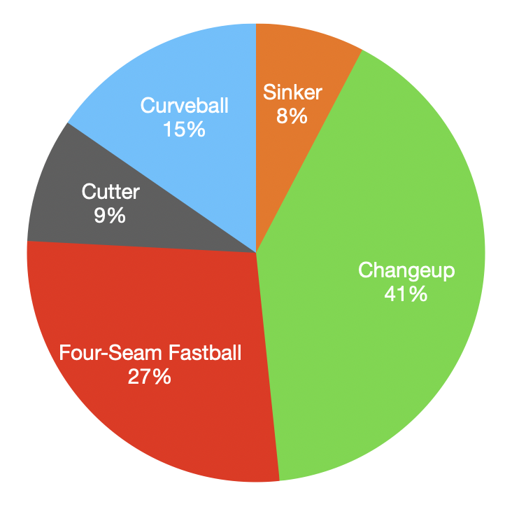 About midway through his start, Wacha abandoned the slider for more changeups and sinkers. This is how his pitch mix finished after seven innings.