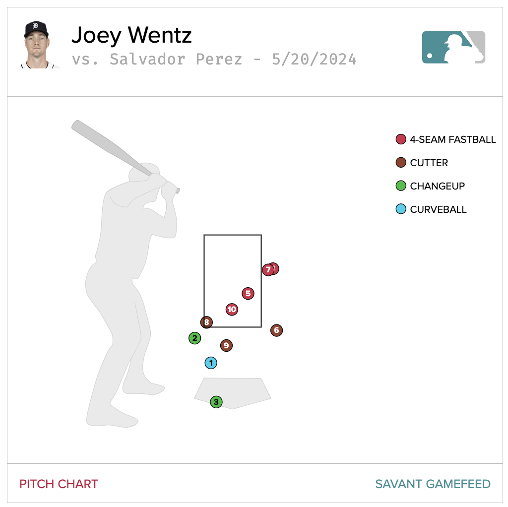 Leaving changeups up in the zone is just asking for trouble. The center-cut four-seamer is the pitch that Kerry Carpenter crushed off a signboard in the left field fountains. While locating pitches in the center of the zone is no way to make a living, Wacha’s mix of pitches kept him out of danger. He was ruthlessly efficient, rarely going deep into counts and letting the Tiger hitters put the ball in play. His repitoire kept them off balance and unable to make solid contact consistently. Rookie Colt Keith seemed to have his number, blistering two singles and Carpenter bashed that home run off a fat four-seamer, but those were the only pitches that were truly squared up against Wacha all night. (Keith also clubbed a run-scoring double down the first base line that hit the bag. When you’re hot, you’re hot.)