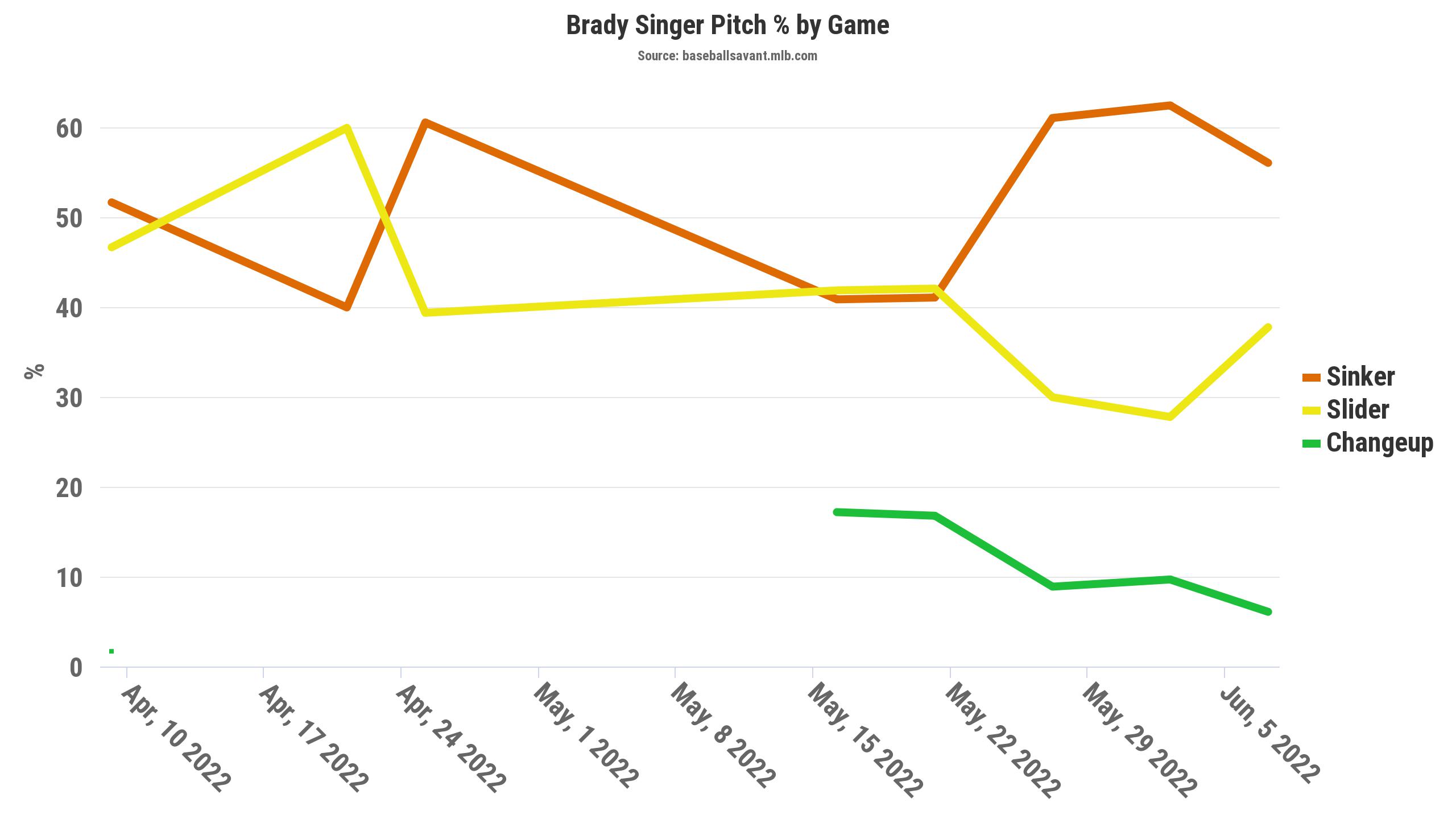 Plus, the sinker/slider mix is back to where we normally have seen Singer in 2020 and 2021.