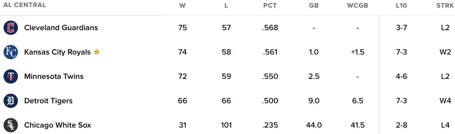 As noted, they are a game back of the Guardians. They’ve been in this position recently and then had that abysmal weekend against the Phillies. This is a different situation, however. Poor games to close out the last homestand notwithstanding, the Royals are surging over their last 10 games. The Guardians are slipping.
