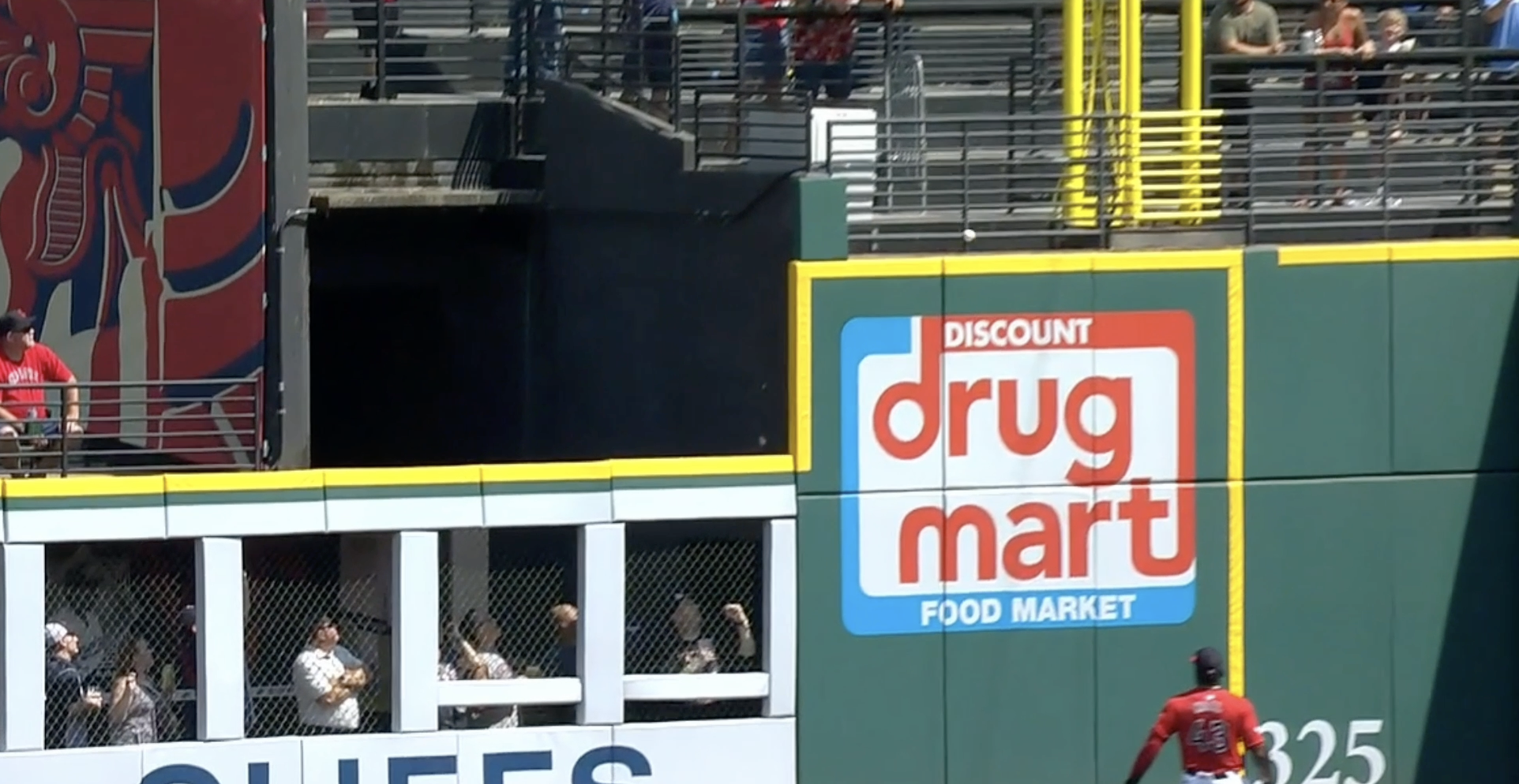 Statcast says the ball traveled 343 feet. Inches above the line making it the difference between a three-run home run and a one (or two?) run double. Amazing.